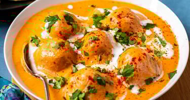 Paneer and veggie dumpling in a creamy onion based sauce.