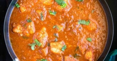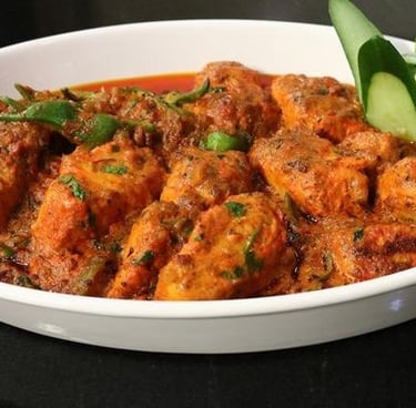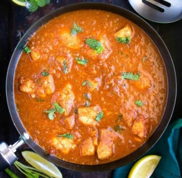 Fish cooked with creamy onion-tomato sauce & aromatic spices.