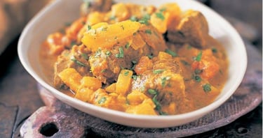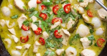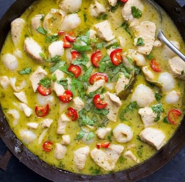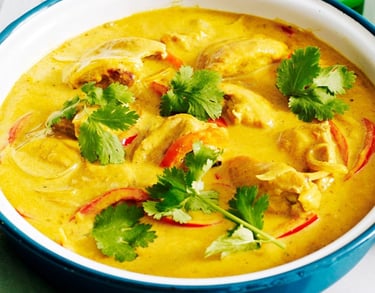mild fish dish cooked with coconut milk $ onion tomato gravy.