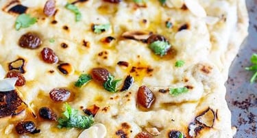 A unique naan stuff with apricots and dates.
