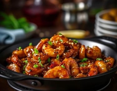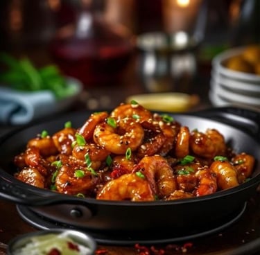 shrimp simmered in a mango-infused curry sweet & savory.