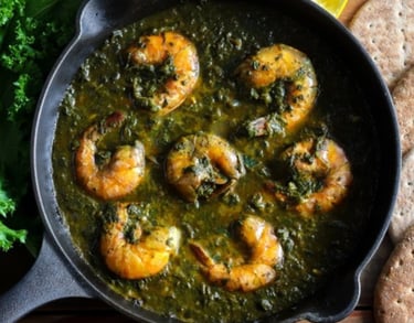 shrimp cooked in creamy spinach with indian spices.