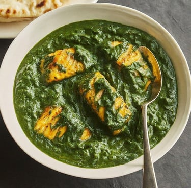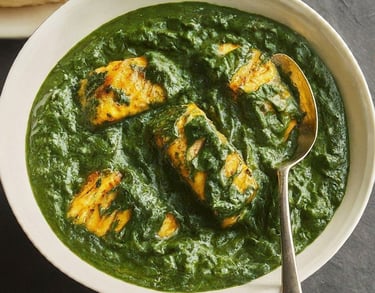 paneer cooked in creamy spinach sauce