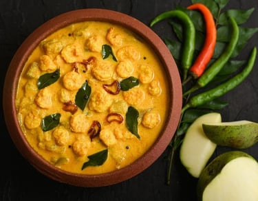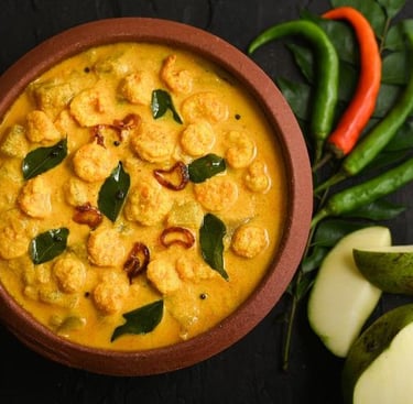 shrimp cooked in coconut milk& onion tomato gravy.