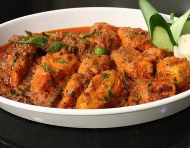 Paneer cooked in mild and rich gravy with spices and served in balti.