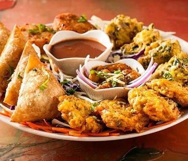 Samosa, pakora, aloo tikki & paneer pakora
