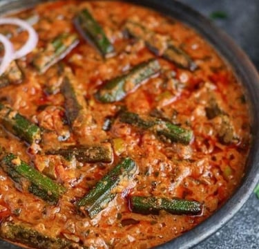 shrimp cooked with creamy onions-tomato sauce & aromatic spices.