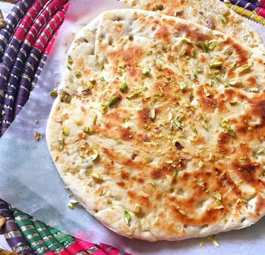 sweet naan with pistachios and coconut.